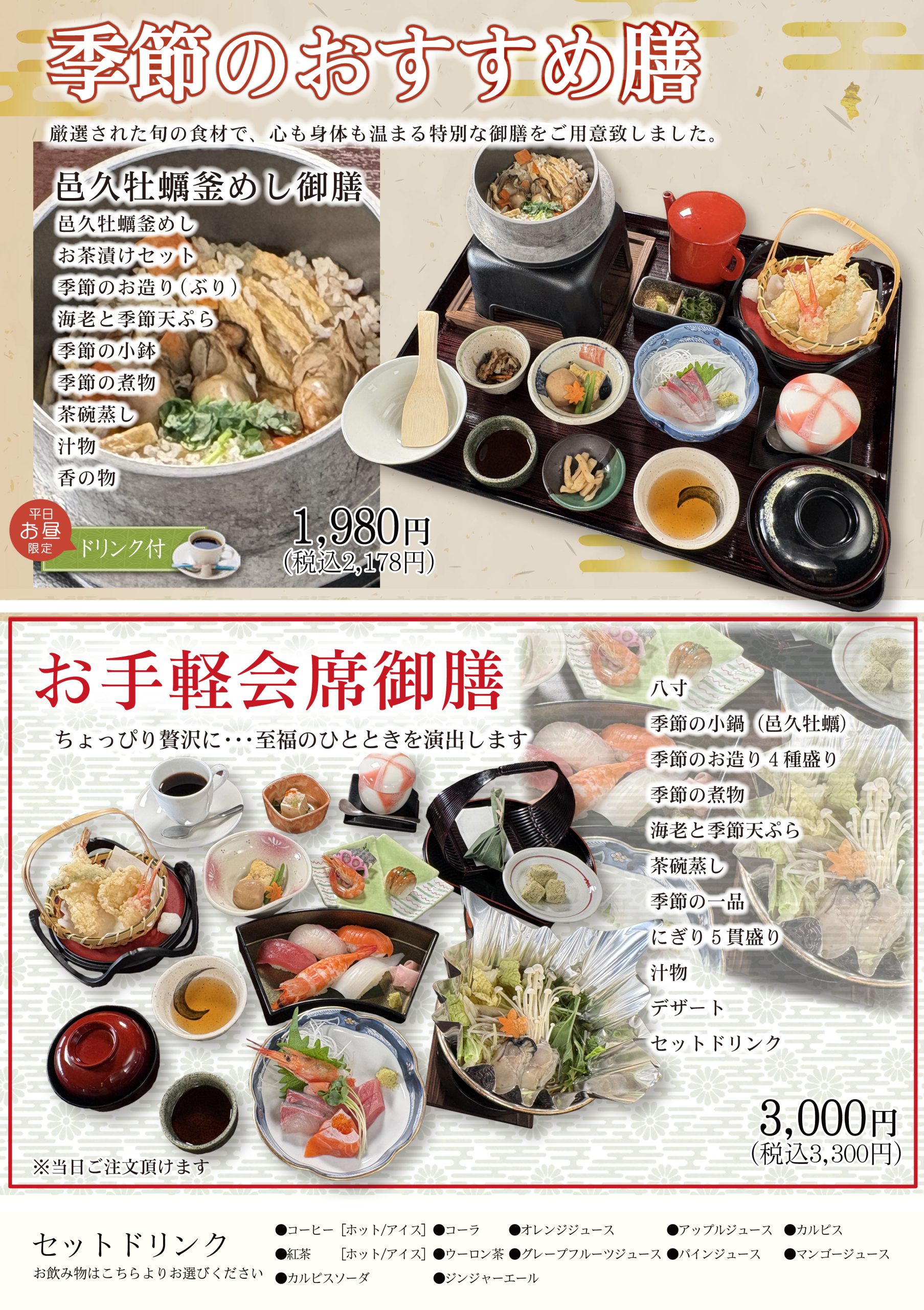 ご指定の場所へお迎えし、味処いりふねでお食事をしていただき、ご指定の場所へ送迎いたします。